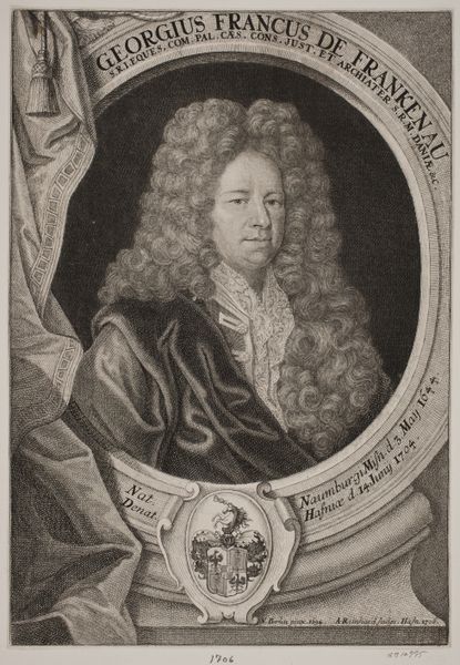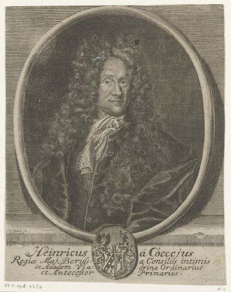 Editor: This is "Portret van Friedrich Hoffmann," an engraving created sometime between 1674 and 1714 by Elias Nessenthaler. It’s interesting how the detailed engraving gives the print a sense of texture and depth. What strikes you when you look at this piece? Curator: Well, the emphasis for me always comes back to materiality and production. It's a print, yes, but how does that context shape our understanding? This wasn't just about replicating an image, it was about the wider distribution of ideas and status through accessible means. Think about who was commissioning and consuming these portraits – it points to a developing market. Editor: So, you are focusing on the socioeconomic implications, then. Do you think this portrait served a different purpose than, say, a painted portrait of the same era? Curator: Absolutely. Oil paintings were unique, bespoke objects for the elite. Prints democratized portraiture, extending influence and reinforcing social hierarchies in new ways. We should examine the labor involved: the engraver, the printer, the network of distribution. Each contributes to its meaning and value. It makes me wonder, how did the process of engraving – with its precise lines and technical demands – affect the image’s reception? Editor: That's a great point. I hadn’t thought about the act of reproduction influencing how the image was perceived. Curator: Exactly! It shifts the focus from individual genius to collaborative production and widespread dissemination. We shouldn’t separate the aesthetic experience from the social and economic contexts. Editor: That gives me a new way to think about art beyond just the image itself. Curator: Agreed! It's a reminder that art always exists within a complex network of materials, labor, and exchange.