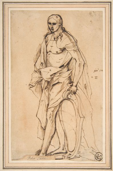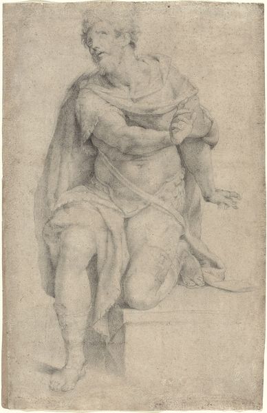 Anthony van Dyck created this drawing, "Portrait of an Alderman," using graphite and possibly black chalk on paper. The initial visual impression is one of dynamic, almost restless energy. Note the swirling lines and the use of chiaroscuro, creating a dramatic interplay of light and shadow. The composition, while seemingly casual, is carefully structured to draw the eye to the alderman’s face and hands. These are the focal points amidst the swirling drapery. Van Dyck's use of line is particularly striking. The lines are not merely descriptive; they are expressive, conveying a sense of movement and vitality. The alderman’s pose, slightly off-kilter, destabilizes the traditional portrait's sense of formal, static representation. This evokes a feeling of immediacy and engagement. Consider how the lack of precise detail in the clothing contrasts with the more defined facial features, hinting at a deeper psychological reading beneath the surface. The very incompleteness of the sketch invites us to participate in the act of interpretation.