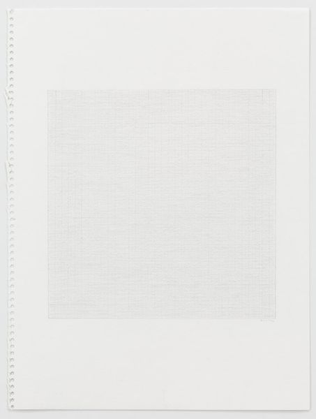 Curator: I find myself calmed by this understated piece. It's deceptively simple, but it resonates with me. Editor: Brice Marden's "Untitled" drawing from 1973—at first glance, it looks like a minimalist grid rendered in graphite. But there’s so much more to unpack here when thinking of it being made in the 70s. Curator: Indeed. The graphite lines create this perfect geometric field. It's reminiscent of Agnes Martin's work, focusing purely on line and form. Editor: The grid as an artistic choice, by this period, becomes intertwined with societal structures and the rigidity of industrialization. This framework imposed a kind of systematic order, almost oppressive, onto the artistic landscape. Curator: I would say it is meditative, no matter when you’re viewing it. The slightly imperfect lines, the subtle variations in tone...it reveals the artist's hand, even within such a structured composition. Marden finds nuance and beauty within constraints. Editor: Those variations and imperfections are where I find the entry point to consider the drawing resisting the grid, disrupting its uniformity—much like resistance to systems of power. Curator: That may be true, yet for me it explores repetition and subtle variations within a restricted visual language. It almost has a musical quality of rhythm and pause. Editor: Exactly, pause. The act of drawing the grid is like a performative act—a testament to time, labor, and the very physical constraints of making. Curator: And that performance is quite beautiful in its quiet intensity. Editor: Right—it speaks volumes about the socio-political climate, the artistic rebellions that were shaping the art world and broader cultural narratives. Curator: In the end, both are important perspectives, considering the object as pure form or social object. Thank you for revealing an insight into its significance for us. Editor: Thank you. By examining this work we learn more about where we come from.