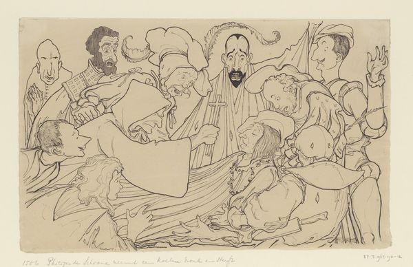 This is James Ensor’s print, *Envy,* and looking at the marks, it feels like he probably made it using etching and drypoint. The lines are scrubby and scratchy, and there's this whole swarm of grotesque figures crowding around a central couple with a baby, their faces a riot of disapproval. The whole thing kind of vibrates with a weird, unsettling energy. It's like a scene from a nightmare, where everyone's judging you. I love how Ensor creates depth and texture through the density of his linework. Look at the way he renders the faces, each line digging into the surface of the plate, leaving a mark that's both delicate and raw. The colour is built up through many layers, with these unexpected, lurid pops of yellow and red. The whole thing looks like it’s been dug up from somewhere, like a buried memory, or a half-remembered bad dream. It reminds me of Otto Dix, the way he used the language of caricature to expose the dark underbelly of society. For Ensor, as for Dix, art is not just about beauty, but about confronting the messy, uncomfortable truths of human experience.