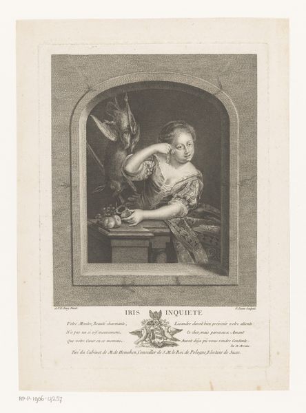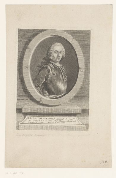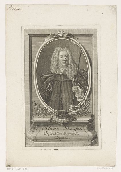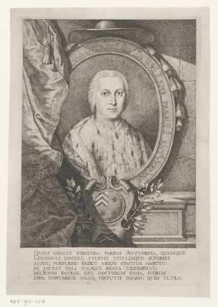 Curator: This engraving from 1773 by Joseph Anton Zimmermann depicts Lodewijk V van Beieren, or Louis V of Bavaria. Editor: It's quite striking. There's a certain weight to it, even though it's a print. I'm drawn to the contrast between the sharply defined figure and the subtly textured background. Curator: It certainly captures the grandeur associated with nobility at that time. Consider the sword he holds; these portraits were vital for projecting power. Editor: Precisely. I'm intrigued by the material reality of the engraving process itself. The labor, the skill, the tools required to transfer this image to paper for mass consumption is quite telling. Did these images democratize access to power? Curator: In some ways, yes. Prints allowed for wider dissemination of images of rulers, shaping public perception, which reinforced power structures. It offered some semblance of access. Editor: True, but at the same time, it obscures the means of production and the inherent cost of creating the engravings. Someone, most likely many, labored to reproduce this image so that Louis could posture and pose for posterity. It speaks volumes about art production in service of powerful families. Curator: Good point, as the piece underscores both the subject's elevated position and the artistic means used to bolster it, circulating carefully crafted depictions of status. Editor: Indeed. It shows that portraits weren't simply neutral representations but were constructed artifacts that reinforce established order, and were then sold into circulation, which solidified social dynamics. Curator: Considering that social and political landscape adds further depth to appreciating such a work, which helps us unravel how visuals contribute to reinforcing structures. Editor: And by looking at the craft itself, we better understand the whole industry supporting these visuals, seeing the portrait not just as an image but as a product, part of an economic cycle maintaining its subject’s status.