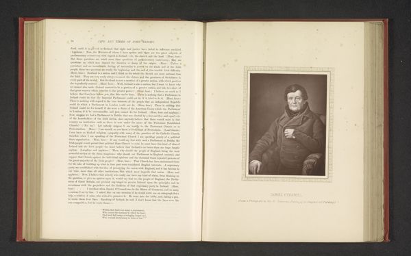 Curator: Looking at this page, we find a reproduction of a portrait titled "George Monk, duke of Albemarle." This print on paper, using ink and engraving, predates 1885. It's currently held at the Rijksmuseum. My first thought: imposing. Editor: Imposing, certainly, but also rather idealized, wouldn’t you say? Look at the precise lines etched into the paper; note the texture achieved mimicking fabric. We're dealing with material processes intending to portray not just the man, but also the office, and the society from which that man arose. The value here is the construction. Curator: And that construction utilizes specific visual tools. Consider the circular frame isolating the subject. Circles traditionally symbolize wholeness and eternity. In portraying the Duke thusly, doesn’t it insinuate a sense of timeless importance and absolute power? Plus, there is that knowing gaze. He seems to be looking into the soul of the viewer, asserting his importance through his eyes alone. Editor: Well, while the gaze is compelling, what I really note are the clothes. His suit of armor, although perhaps an artistic embellishment rather than the garments he wore on a regular basis, clearly evokes a period defined by war and societal restructuring. His visible wealth, which we could argue, resulted from the control of resources and means of violence. Curator: The armor definitely adds another layer. It isn’t just protective wear; it's symbolic armor as well, a shield against criticism or challenge. But then the soft lace collar provides a certain tenderness or humanity beneath the militant signifiers. I can't help but see a calculated performance being delivered here, designed for lasting appeal. Editor: Performance absolutely! An image manufactured for circulation and consumption. Think about the labor involved in creating this image. This wasn't simply "art" – it was a product made by someone, likely in a workshop, perhaps as part of a propaganda campaign to build his legacy. We're really studying a fascinating document that is part artistry and part manufacturing. Curator: An angle I appreciate. It pulls us back to the artwork's socio-historical positioning rather than solely lingering in aesthetic interpretation. Editor: Precisely, and hopefully offering others a path for future investigation as well.