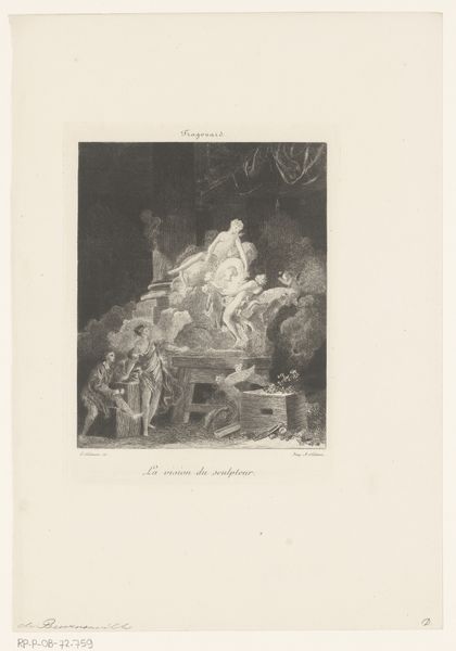 Adolphe Mouilleron made this print called 'Rat verschanst in etenswaar' using etching, sometime in the mid-19th century. It shows a scene of decay, with a rat feasting on spoiled food, a still life composition with an unsettling twist. Made in the Netherlands during a time of significant social and economic change, we could see this as a reflection of anxieties around poverty, hygiene, and the unseen struggles of the urban poor. Dutch society was grappling with industrialization and urbanization, leading to overcrowded cities and increased social disparities, and we know that these conditions often led to public health issues. Prints like these are interesting because they can make pointed social commentaries. By showing the gritty side of life, Mouilleron may have been trying to provoke his viewers to reflect on the less palatable aspects of their society. Of course, the interpretation of any artwork requires a solid foundation of knowledge. By consulting historical documents, social surveys, and the records of public health initiatives, we can gain a better understanding of the world that Mouilleron was responding to.