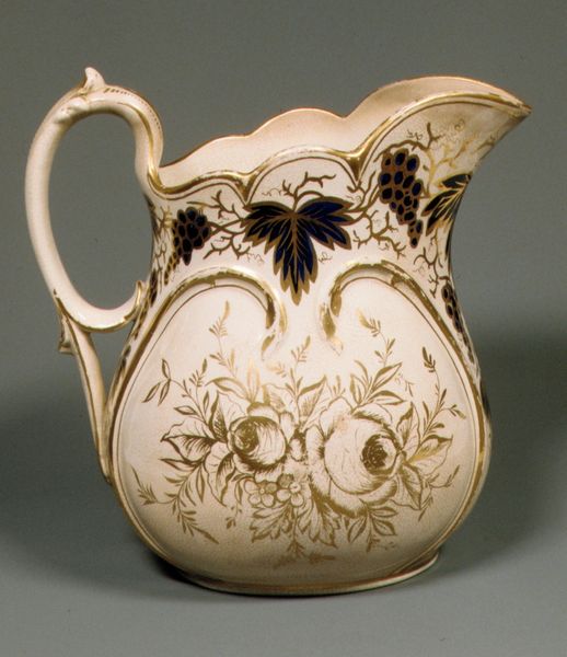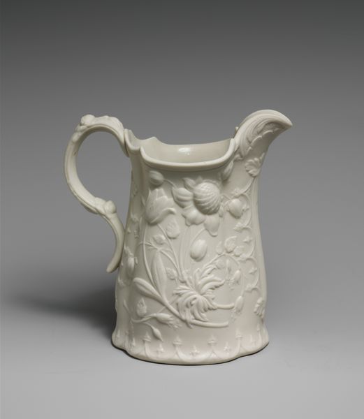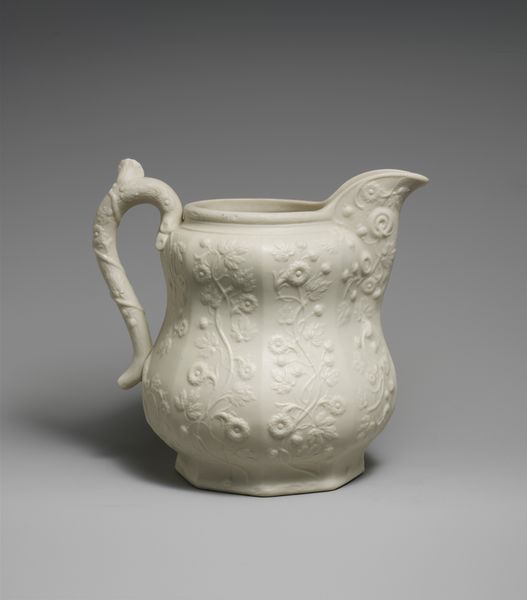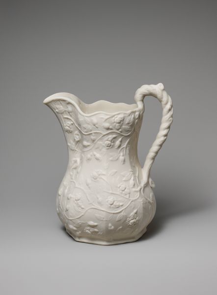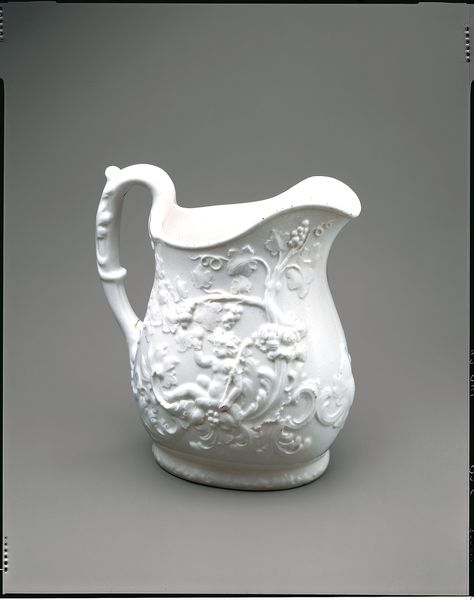 This white pitcher was produced by the United States Pottery Company, which was founded in 1852. During the Victorian era, the rise of industrialization changed social structures and influenced the decorative arts. Here, the naturalistic design of blossoming vines makes reference to both the aesthetic interests of the period, but also the Victorian obsession with class and the home. In many ways, objects like these were central to the construction of feminine identity. Serving vessels such as these would have been used in the domestic sphere, often managed by women. While the United States Pottery Company sought to innovate through new technologies and cater to a wide consumer base, the aesthetic of the work, with its emphasis on floral motifs, maintained traditional ideals around femininity. The pitcher serves not only as a functional object but also as a mirror reflecting the complex social and gender dynamics of the time.