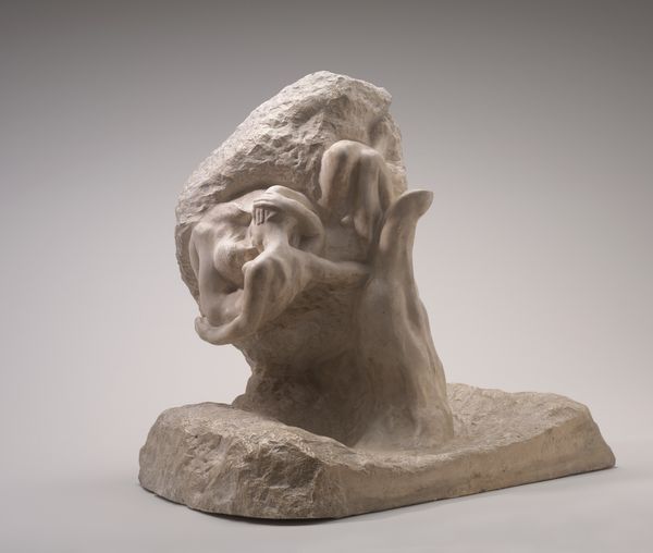 Curator: Here we have "Old Woman Standing with Folded Arms," a plaster sculpture crafted by Auguste Rodin sometime between 1880 and 1912, now residing at the Metropolitan Museum of Art. What strikes you first about this piece? Editor: It’s a stark, almost brutal depiction of aging. The texture is raw, unfinished in places. It evokes feelings of vulnerability, the weight of years etched into the very fabric of the sculpture. Curator: Indeed, Rodin's approach challenges traditional idealized portrayals. Unlike academic norms, he highlights the physical realities of age, presenting a counter-narrative to beauty standards prevalent at the time. The sculpture embodies the late 19th century Realist movement's fascination with everyday life, devoid of romanticization. Editor: And there’s a certain stoicism suggested by her posture. The folded arms—they're almost a defensive gesture, yet there's no visible distress on her face. It makes me consider the symbolic role of the aged woman in art and myth. The wise crone, the keeper of secrets, the inevitable future... Curator: A potent interpretation. Given that Rodin did not idealize the human form, particularly as he experimented and grew as a sculptor, this work also can be interpreted in light of debates concerning what can and cannot be regarded as beautiful, acceptable, and ultimately deserving of a museum space. Editor: So it's a social commentary, a challenge to accepted norms of representation. That unfinished quality, those deliberately rough surfaces, become a form of defiance. It compels us to confront the unvarnished realities of human existence. Curator: Precisely. It invites viewers to reconsider conventional standards promoted by cultural and political elites regarding art and beauty, emphasizing the beauty in what society often marginalizes. Editor: A lasting impact. It makes one contemplate not just the subject but the societal structures that define how we see and value individuals. Curator: Agreed. This sculpture exemplifies how Rodin utilized his craft as a tool for social critique, pushing against established boundaries within the art world itself.