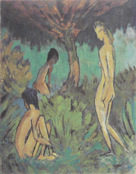 Here we see Paul Cézanne’s "Trois baigneuses", an oil painting that captures nude female figures within a natural landscape. The act of bathing, as depicted here, carries echoes of classical antiquity, reminiscent of Diana and her nymphs. These scenes, common in Renaissance and Baroque art, often symbolize purity and renewal. However, Cézanne strips away the explicit allegorical content, focusing instead on the forms and their relationship to the surrounding environment. Notice how the figures, though seemingly natural, are constructed with a geometric sensibility. This approach recalls the classical ideal of the human form while also pushing towards a modern abstraction. Bathing women are an enduring motif in art history, resurfacing time and again. Through each iteration, the symbol evolves, reflecting changing cultural values and artistic movements. In Cézanne's hands, the classical theme is reborn, infused with a modern sensibility that continues to resonate.