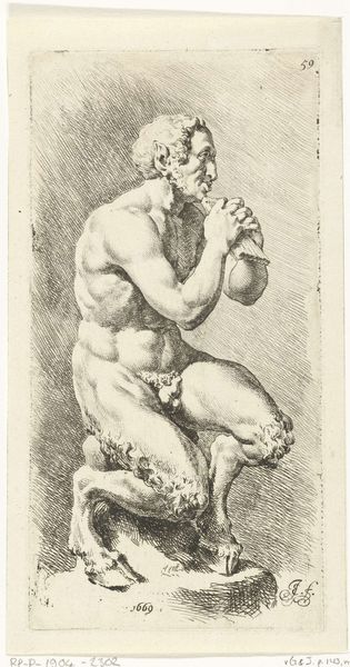 Editor: We are looking at "Christ with the Cross and Other Instruments of the Passion," an engraving by Jan de Bisschop, dating from 1668 to 1671. There is a raw vulnerability in the figure, which is striking. What can you tell us about this work? Curator: Indeed. It’s like seeing inside the artist's very heart, isn’t it? De Bisschop was capturing an almost tangible moment of... contemplation. Do you see the texture in the cross, practically splintering before us, juxtaposed with the almost idealized form of Christ? Editor: Yes, that contrast is powerful. The idealized Christ seems in tension with the instruments of his torture. Curator: Precisely! The Baroque era was about intense emotion. The suffering wasn't just an event; it was a feeling to be absorbed. Notice how the light falls, caressing one form, and brutally highlighting another. Can you almost feel the weight of the cross? De Bisschop isn't simply depicting, he's inviting us to participate in the experience. He wants you to reach out and touch that emotion. Editor: The cross dominates the work in some ways; I’d initially overlooked it. It brings a complex tension to the depiction of Christ. Curator: Exactly! It's like he’s saying, “I may be suffering, but my gaze is towards eternity.” Isn't that what great art does? It holds a mirror to the grand mysteries. Editor: I think so, yes! It definitely is making me reflect more deeply. Thanks! Curator: The pleasure was all mine! Art should be less a lecture and more a conversation, and you added immensely to that.