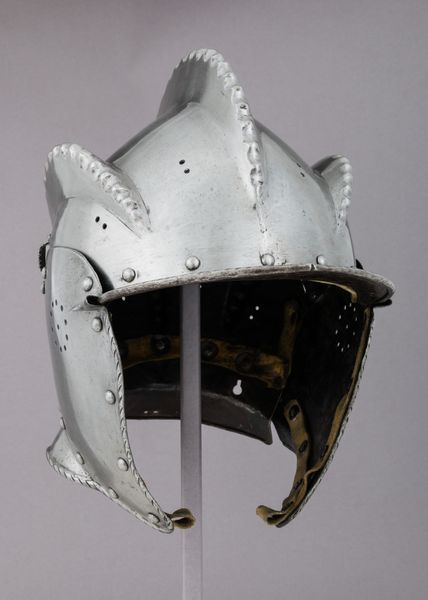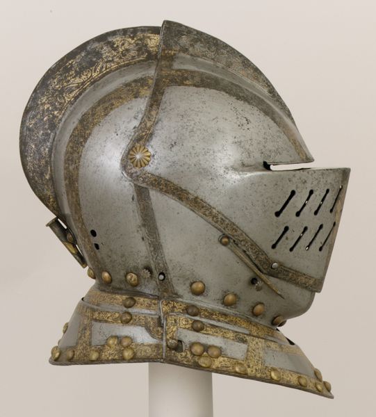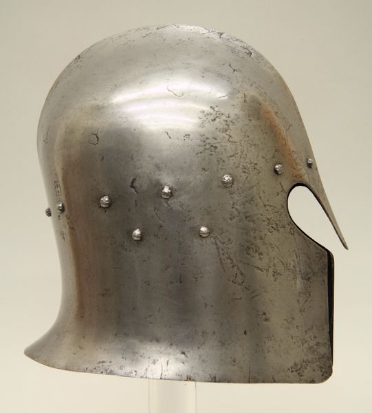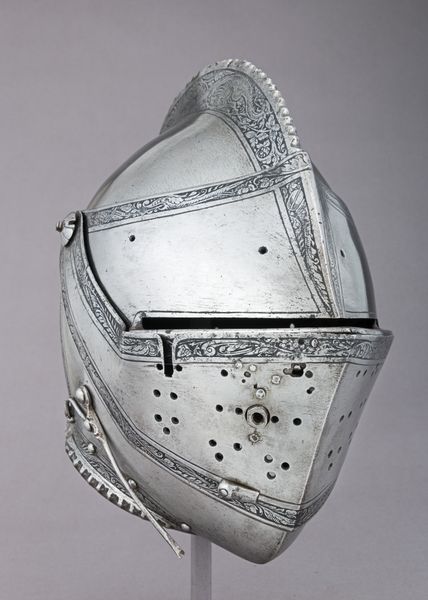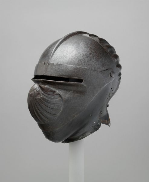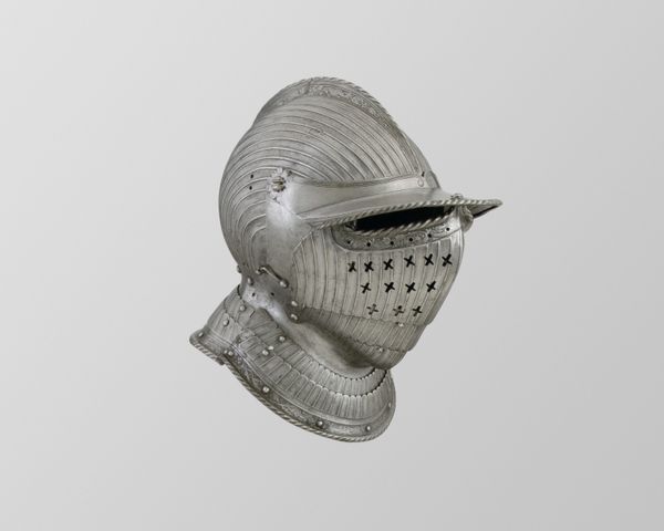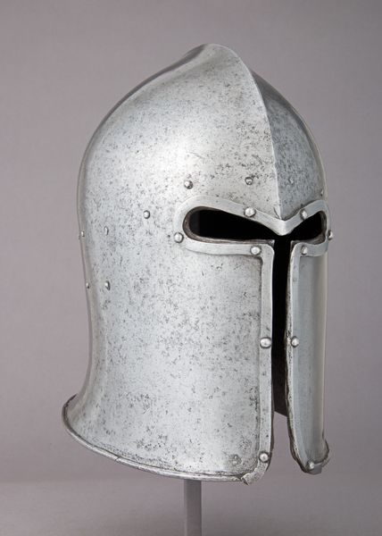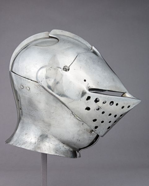 This helmet, part of a suit of armor, was likely made for the knight Pankraz von Freyberg. The anonymous maker was likely a master armorer, whose practice involved specialist skills of metalworking. Notice how the metal has been worked to shape the overall helmet, including features like a crest and visor. The processes used, such as forging, hammering, and polishing, reflect an intricate understanding of the material and its potential. Beyond its functional purpose, the helmet tells us a great deal about the historical period in which it was produced. Armor was an expensive, custom-made status symbol: a demonstration of wealth, power, and skill, for both the wearer and the maker. The creation of such an object involved the coordinated effort of multiple individuals, each contributing specialized knowledge and labor. So while we might admire the helmet for its aesthetic qualities, it’s also a testament to the social and economic structures of its time.