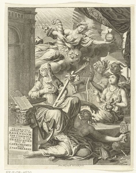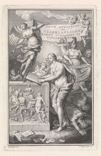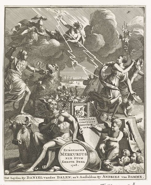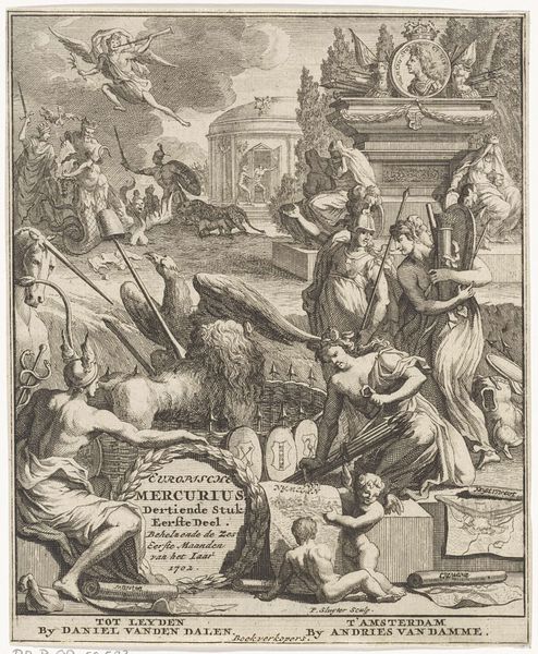 This title page for the Europische Mercurius, dating to 1711, was made anonymously, but we know it was printed in Amsterdam and Leiden. It’s a detailed engraving, a printmaking process that involves incising an image into a metal plate, inking the plate, and then transferring the image to paper. Engraving was a meticulous and highly skilled craft, demanding years of training. The density of the lines and the subtle gradations of tone suggest the amount of work involved in the production process. The sharp lines and graphic clarity gave printed images like this a unique visual power. It allowed for detailed reproduction and dissemination of information. Consider the labor involved in producing such a piece, from the initial design to the final print. It invites us to think about the wider context of print culture and the dissemination of news and ideas in the early 18th century. This artwork isn’t just an image; it’s a product of skilled labor, technological innovation, and social communication.