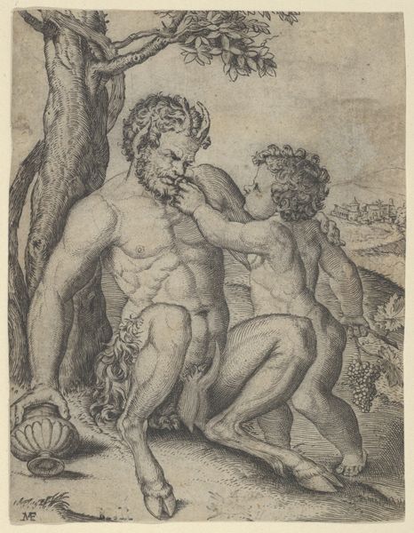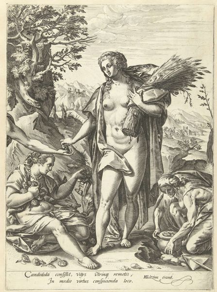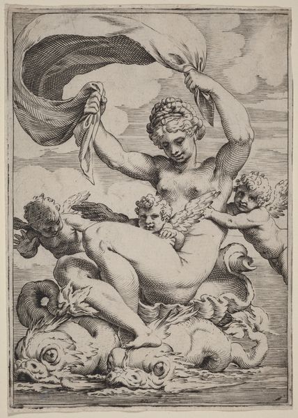 This engraving, "Triumph of Virtue over Lust," was created around 1600 by Wierix, and you can find it here at the Rijksmuseum. The composition immediately presents a stark contrast between the figures representing virtue and lust. Notice the satyr, a symbol of untamed desire, being driven away by Cupid, who embodies virtuous love. The reclining figure seems caught between these opposing forces, a dynamic tension that structures the scene. Wierix employs line and form to set up a visual semiotic system: the rough, diagonal lines suggesting the satyr's hasty retreat versus the smoother, curved lines delineating the idealized human form. This contrast highlights the philosophical discourse of the time, which was marked by the struggle between reason and passion, and the triumph of Christian morality over earthly desire. Consider how the material qualities of the engraving—the fineness of the lines, the contrasts of light and shadow—emphasize this didactic message. This artwork, therefore, functions not just as an aesthetic object but as a potent emblem of cultural values.