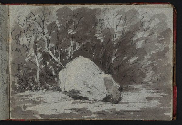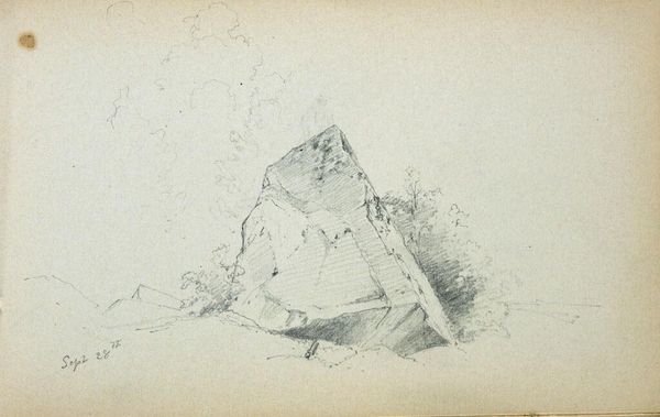 Curator: Here we have Benjamin Champney's small pencil sketch, "Rocks in a Landscape." Editor: It feels raw, almost unfinished. The hatching creates a sense of depth, but the rocks themselves lack precise definition. Curator: The swift, economical marks give us the basic structure, no? See how he uses line weight to define form and suggest light? Editor: But what about the paper itself? Its texture and age contribute significantly. Was it a costly paper, or something readily at hand for a quick study? Curator: The composition certainly directs the eye, leading one through the planes and receding into the implied space. The verso also has a partial landscape. Editor: It raises questions about Champney’s process. Was this a preparatory sketch for a larger work, or an exploration of the material qualities of rock and paper? Curator: Regardless, it offers a glimpse into Champney's method of capturing the essence of a scene. Editor: Indeed, the materiality speaks volumes. A humble sketch, pregnant with potential.