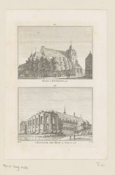 Hendrik Spilman created this print, titled 'Gezichten op het kasteel van Boxmeer, en het dorp Boxmeer', sometime in the 18th century using etching. Spilman's detailed rendering of Boxmeer reflects the growing interest in topographical art during the Enlightenment. While seemingly objective, these images often reinforced existing power structures. Here, we see the castle, a symbol of authority, prominently displayed above the village. The village is shown with its church, suggesting the intertwined relationship between religious and secular life. Consider the experiences of ordinary people who lived in the shadows of these grand structures. How did their daily lives intersect with the power represented by the castle and the church? The print invites us to reflect on whose stories are typically told and whose are often overlooked in historical narratives. Spilman’s print not only captures the likeness of a place, but also the complex social dynamics embedded within it, reminding us that every landscape is a tapestry of diverse experiences.