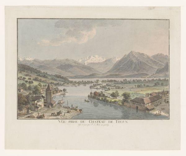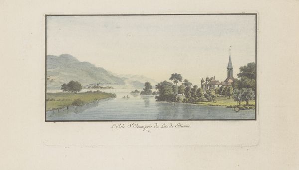 Johann Ludwig Aberli made this tranquil view of Isle Saint-Jean on the Bielersee with watercolor and ink. Though seemingly straightforward, this combination has a rich history. The paper itself, likely handmade, presents a subtle texture that affects how the colors are absorbed and reflected, giving the scene a soft, almost dreamlike quality. Aberli’s skilled application of watercolor allows for delicate gradations of tone, building atmosphere with thin washes. Ink defines the architectural details and vegetation, anchoring the composition. This interplay speaks to the intersection of craft and fine art in the 18th century. Watercolor was associated with both amateur pastimes and professional practice. The amount of work and skilled traditions that Aberli engaged with are relevant, along with the social and cultural context of his practice. Ultimately, understanding Aberli’s choice of materials and techniques allows us to appreciate the nuanced meaning and enduring appeal of this work.