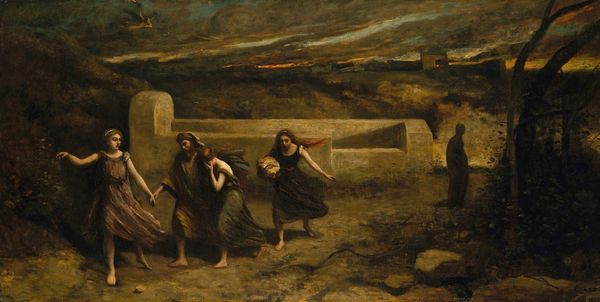 Camille Corot painted "Le Christ Au Jardin Des Oliviers". It is an intimate portrayal of Christ's emotional and spiritual ordeal in the Garden of Gethsemane. Corot, working in 19th-century France, captures a moment heavy with theological and emotional weight. Christ is depicted in his anguish, kneeling before an angel who offers him a chalice. The chalice symbolizes the suffering and sacrifice that awaits him. We see the narrative not just as a religious scene, but as a profound meditation on human suffering, faith, and divine will. Through the dramatic use of light and shadow, Corot conveys the emotional intensity of Christ's internal struggle. The somber tones and subdued palette reflect the gravity of the moment. This depiction encourages viewers to contemplate themes of sacrifice, redemption, and the complex relationship between humanity and divinity. Corot invites us to reflect on the emotional and spiritual dimensions of human existence.
