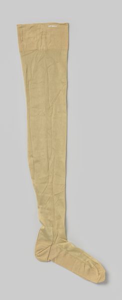 Editor: This is an image of a pair of "Handschoen van beige zeemleer" or beige leather gloves, believed to be from sometime between 1900 and 1935. They look so fragile! What strikes you most about them? Curator: You know, what dances in my mind are the hands that might have worn these. Hands that perhaps penned passionate letters, held a steering wheel of an early automobile, or maybe, just maybe, applauded a dazzling performance. It's easy to imagine their story, isn't it? Editor: Absolutely! And were long gloves common during this period? Curator: Oh, quite! They were like the jewelry of the arms. Gloves signaled social status, modesty, and of course, fashion. These gloves here appear quite simple, practical almost, in their beige color, which tells me they were perhaps for daytime wear. Do you find the colour unassuming, or somehow evocative? Editor: Unassuming at first, but seeing them closer, it’s like looking at faded memories. What was the zeemleer – the leather – like to touch back then, compared to today's fabrics? Curator: Zeemleer, or chamois leather, possesses this wonderful, almost buttery softness. Can you imagine the sensation of sliding these on, the subtle grip against the skin? It spoke of luxury, yes, but also an intimacy with the everyday rituals. Editor: I never considered the tactile experience of gloves. Curator: Exactly! Material holds stories – whispers from hands long gone. Editor: It’s funny how something so practical can hold so much imagination! Curator: Indeed. We look, and gloves speak of histories, touch, and whispers of the past.