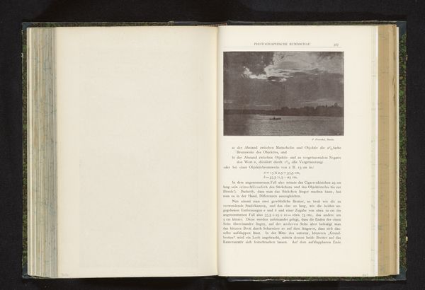 Curator: This is a photographic print entitled "Gezicht op een winters landschap met zonsondergang", or "View of a Winter Landscape at Sunset," attributed to G. Albien, dating from before 1901. Editor: A melancholic, almost ethereal scene. The muted grayscale tones and vast, flat landscape evoke a sense of isolation. Curator: It is striking how Albien, working within the pictorialist style, emphasizes atmosphere over detail. We observe a hazy horizon line and only a few vertical structures punctuate the otherwise unbroken plane. It resembles, in its formal reduction, a minimalist composition. Editor: The pictorialist movement often aimed to elevate photography to the level of painting. How might this image speak to contemporary notions about land, industrialization, and representation within photographic practices? The three tall columns hint at encroaching development, don’t they? Curator: Certainly. Considering the period, photography had grown immensely. Images were now circulating at unprecedented speed, creating an archive for visual discourse. With the emergence of documentary, it’s also vital to see the photographic "truth" being bent here; Pictorialism used the image for atmosphere. Editor: How the photographic images, especially in mass publications such as these, impacted notions of “nature” seems crucial to our understanding of evolving concepts of wilderness and environment during this period. The soft-focus further idealizes the cold, bare landscape, don’t you think? Curator: Undeniably, with a certain romantic detachment. It compels me to admire the tonal arrangement foremost and foremost – a certain aesthetic pleasure superseding direct engagement with the environment itself. Editor: And to that point, perhaps such curated aesthetic consumption has shaped the political response, or lack thereof, towards industrial incursions upon the pastoral setting. It gives food for thought. Curator: Indeed, viewing "View of a Winter Landscape at Sunset," with all of its artistic sophistication, has cast in sharp relief its complex cultural positioning. Editor: Absolutely, the intersection of art, environment, and industry within its elegant borders has sparked many avenues for exploration and future inquiries.