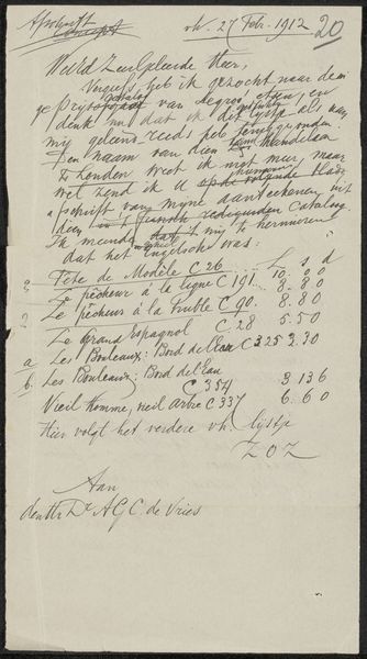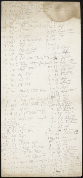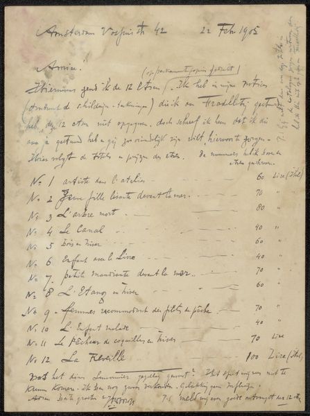 This is a page from Philip Zilcken’s archive, created sometime in the late 19th century. The script-like handwriting, rendered in delicate lines of ink, sprawls across the aged paper, creating a visual texture of language and form. The page presents a network of meaning and reference; the written word merges with abstract line work that both supports and complicates the textual elements. The sketch of what seems to be a boat-like shape disrupts the linear flow of the text and suggests a deeper, more fragmented composition. The layout invites us to consider how Zilcken used the structure of the page itself to map out his thoughts. This use of language and form challenges conventional notions of what constitutes a finished artwork, blurring the lines between preparatory sketch and finalized concept. It’s a fascinating demonstration of thought made visible, asking us to reconsider how we perceive artistic intention and the creative process.