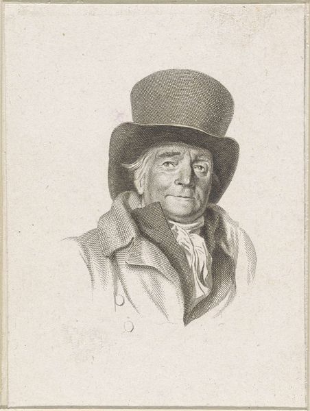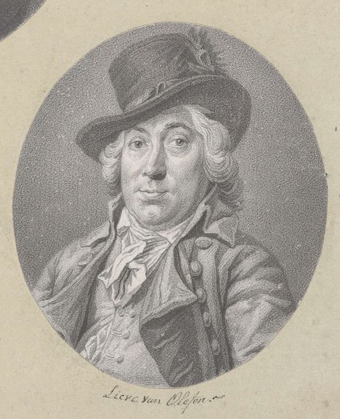 Curator: Here in Gallery 12 at the Rijksmuseum, we have an intriguing portrait titled, “Portret van Adriaan de Lelie.” Executed sometime between 1775 and 1833, this drawing is rendered in pencil. Editor: Wow, he's got such an assured, slightly quizzical air about him. Like he knows something you don't and isn't quite sure whether to share it. You know? He's handsome and confident, but those wisps of hair escaping his hat suggest a bit of dishevelment too. What does he do? Curator: We know that the sitter, Adriaan de Lelie, was himself a painter, quite successful as a portraitist and genre painter in the late 18th and early 19th centuries in the Netherlands. Given the direct gaze, it feels like this portrait may have been for other artists within De Lelie’s network. The work may function less as an object of admiration and more as a study for understanding the likeness and essence of Adriaan de Lelie as a fellow creative and prominent social figure. Editor: That makes sense, knowing he was a painter. There’s an ease to the lines, especially around the eyes and mouth, that an artist would appreciate. It's so subtle, yet it captures a distinct personality. But it also makes me think of all the sittings and the dynamic between artist and subject. There is an undeniable intimacy to it. The medium helps that so much. It gives us such close access. Curator: Indeed. The choice of pencil lends a certain informality, a sense of immediacy. Unlike a formal oil painting, this drawing feels almost like a fleeting glimpse into the life of Adriaan de Lelie, capturing not just his physical appearance, but also perhaps his intellectual and artistic spirit. These lines and shadows communicate something important about the sitter’s own practice and legacy as an artist. Editor: It's like a visual whisper. Makes you wonder what stories that pencil could tell if it could talk. And whether de Lelie realized he was sitting for what would become a museum piece. Something very profound happens with an object such as this over time. Curator: Exactly. From studio aide-mémoire to valued object on display here, it showcases the shifts in artistic appreciation and demonstrates how certain pieces are promoted as objects of cultural value at certain points in time. It gives me so much to think about regarding Adriaan de Lelie, and of the structures that preserve him. Editor: What a fascinating study. I'm heading off now to contemplate portraiture and impermanence, thanks to this wonderful drawing.