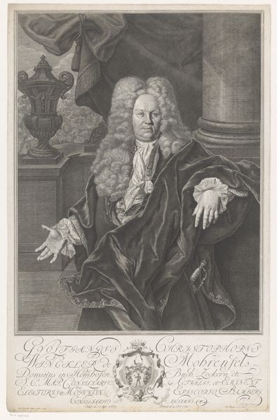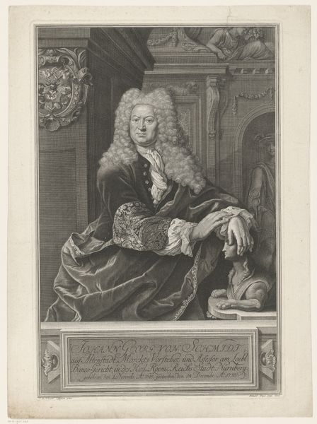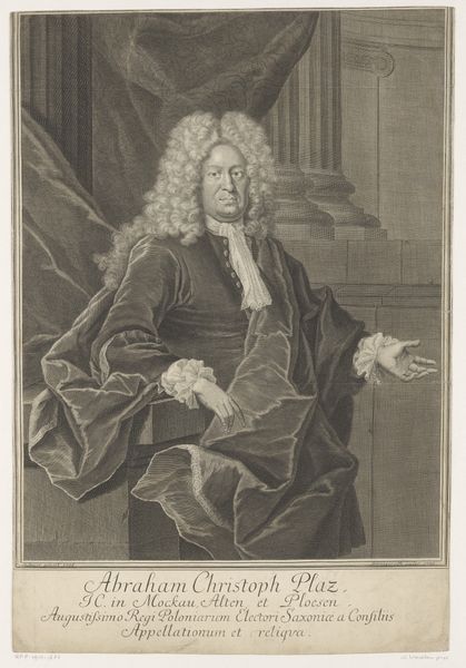 Bernhard Vogel created this portrait print of Christoph Dorsch sometime around the late 17th to early 18th century. As a print, it would have been produced through a labor-intensive process of carving an image into a metal plate, inking it, and then pressing it onto paper. The texture and tone achieved speak to Vogel’s skill as a printmaker. Notice the contrast between the smooth expanses of Dorsch’s robe and the fine, almost chaotic lines that define his elaborate wig. Vogel used a technique called hatching to create this variation, building up areas of shadow with many tiny, closely-spaced lines. This wasn't just about accurately representing Dorsch, but also about signalling his status. The very act of commissioning and creating a print was a signifier of wealth and power. So, while the print medium allowed for wider distribution of images, its creation was still deeply embedded in social and economic hierarchies. This artwork reminds us that even seemingly simple images are products of complex processes, reflecting both artistic skill and the social structures of their time.
