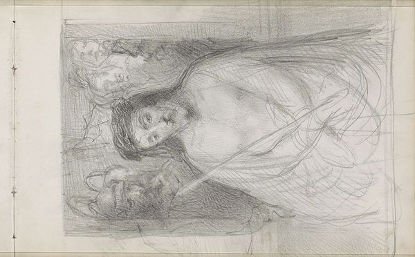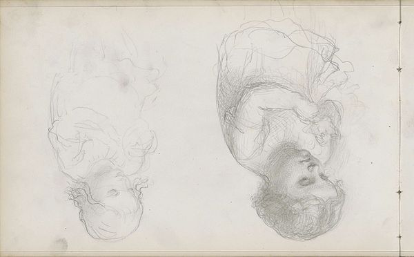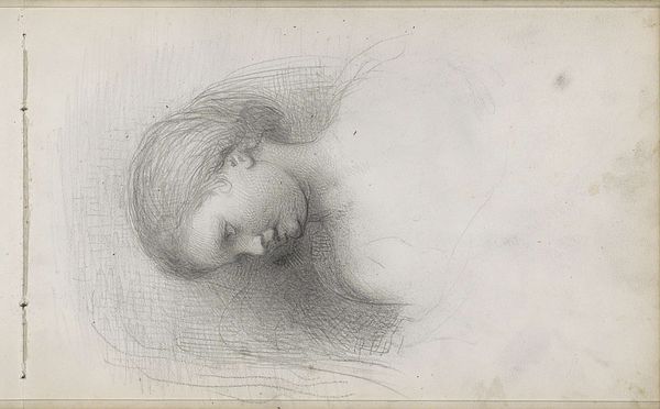 Curator: This is "Groep van tien mannen en vrouwen," or "Group of Ten Men and Women," a pencil drawing created around 1858 by Bastiaan de Poorter. It's currently held at the Rijksmuseum. Editor: Oh, this is... intriguing. Almost unsettling. There’s something about the density of the figures, all crammed together and mostly sleeping, that gives me the creeps. Are they sleeping, or… Curator: It does evoke a rather somber feeling, doesn’t it? You notice the sketch-like quality. The artist seems to be exploring form and composition more than striving for a polished finish. He really makes the pencil work, layering the graphite to create depth in those faces. Editor: Right. It makes me wonder about the material limitations and the context of its creation. Was paper expensive? Was it a preliminary sketch for something grander? The work is not quite complete—there's labor in process, especially visible in the outlines. You get a sense for the economic value in a sketch. It also shows how materials themselves can dictate the aesthetic choices, right? Curator: Absolutely, the availability and cost of materials definitely play a role. Maybe this sketch was intended as practice for a larger composition. He may be testing various faces and figuring out placement. But as a complete artwork itself, the unfinished appearance provides intimacy for the viewer: a voyeuristic scene perhaps of observing the human figure in its most vulnerable, private, moments. Editor: Yeah, vulnerable is the perfect word. The unfinished quality lends this intimate insight. Look at the visible process, where lines and shadows reveal the maker's movement: the economic aspect really strikes home because, ultimately, everything ties back to resources—both natural resources and labor itself. How accessible was artistic training or the basic supplies for a lower class versus upper class citizen? It raises questions of class, doesn't it? Curator: Absolutely. These are really pertinent observations. Perhaps the intention was more in the process than the completed article? Now that I consider that further, that's definitely quite liberating... not weighed down by having to get it *perfect*. Editor: Indeed. De Poorter gives us the impression of both accessibility and privilege in his art. It’s something that you carry away from your experience of seeing this drawing, regardless of the material and the method that he used to create it. Curator: And I walk away just feeling more empathetic for those resting souls and maybe wanting to reach for my own pencils.