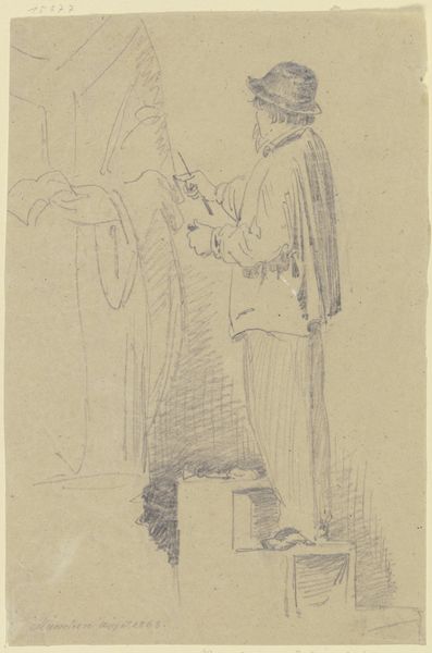 Herman Moerkerk made this portrait of Jan Hamdorf and W. van der Pluym, probably with pencil and maybe a little bit of watercolor. It's kind of a casual affair, like a sketchbook page, right? I like the way Moerkerk lets the lines build up, like he's thinking through the image right there on the paper. You can see the adjustments he's making, the search for the right contour. It’s like we’re seeing the artist’s mind at work. Look at the figure standing on the left, the way the lines of his jacket sort of trail off, dissolving into the background. It gives the piece this feeling of being caught in-between, like a memory or a fleeting impression. It reminds me a bit of some of Philip Guston's more cartoonish drawings, not in style exactly, but in the way they both embrace a kind of raw, searching quality. Art's just a long conversation, and Moerkerk's adding his voice, leaving it open for us to jump in and add our own thoughts, too.