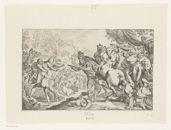 Christian Rugendas created this print, "Veldhospitaal," employing etching and engraving techniques. Rugendas lived during a time marked by frequent conflicts, and his artistic focus on military subjects can be seen in the historical context of 18th-century warfare and its impact on society. In "Veldhospitaal" we see a field hospital, a place of both healing and suffering. The print invites us to consider the human cost of war, beyond the battlefield. Rugendas avoids glorifying battle; instead, he turns our gaze to its grim aftermath. The wounded soldiers, sprawled on the ground, create a scene of vulnerability and pain. The doctors and caregivers are rendered as figures of compassion amidst the chaos, highlighting their efforts. By focusing on the field hospital, Rugendas offers a nuanced perspective on 18th-century military life, inviting us to contemplate the experiences of those who were most directly affected by the violence of their time.