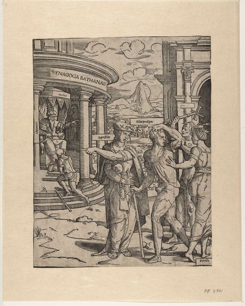 Curator: This engraving, "The Reconciliation and Forgiveness of the Prodigal Son" by Cornelis Anthonisz. dated around 1535-1545 and housed here at the Rijksmuseum, is quite the narrative compressed into a single image. Editor: It really is. I find the density of detail fascinating. The contrast of the figures feels really dramatic. What is your take on it? Curator: I'm immediately drawn to the materiality and production of this engraving. Think about the labor involved in meticulously carving those lines into a metal plate. It was clearly designed for reproduction and widespread distribution. The subject matter is secondary to understanding how the work itself democratized access to biblical narratives. It’s also critical to understand what papers were available in 16th century Netherlands and what the different papers would communicate to the audience then. Editor: That makes me see it differently. So, the material—the engraving, the paper—is part of the message itself? How does that connect with, say, the obvious religious content? Curator: Exactly! The act of reproduction through printmaking transforms the meaning. It removes the uniqueness of a hand-painted artwork, creating a mass-produced item, almost a commodity. Look at those scenes within scenes – baptism, communion. Religious sacraments, now also items accessible to a growing middle class. Is this about devotional piety or broader social shifts driven by accessible visual culture? Editor: It sounds like you're arguing that the rise of printmaking enabled not just the spread of religion, but a new kind of relationship with it. Sort of demystifying faith, almost? Curator: Precisely. And the accessibility influenced interpretations and challenged power structures controlled by the Church and wealthy elite, right? It’s a new age where the making process democratizes understanding and potentially subverts existing authorities through broader consumption. Editor: I hadn't considered the print itself as a vehicle for social change, and it makes you appreciate it even more. Thank you. Curator: And for me, it highlights how focusing on material conditions challenges assumptions and reveals unexpected meanings within this powerful image.