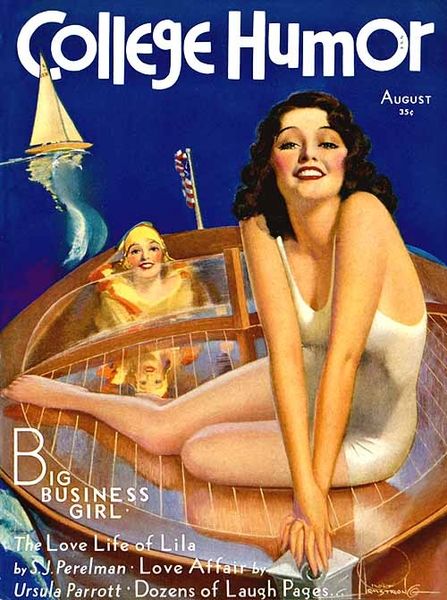 Rolf Armstrong made this cover for College Humor, and it’s all about slick surfaces and smooth illusions. The way he handles the paint, it’s like he's not even touching it, right? Everything is so airbrushed and dreamy, especially the figure. Check out the reflection in the water, how it mirrors the woman above but inverts the colour of the beach umbrella. It’s like a portal, bending the rules of reality. The paint is thin and controlled, which is pretty different from how I approach things. I like to get my hands dirty! I love a bit of texture, something raw and real. There’s something of J.C. Leyendecker here, you know, that same attention to the graphic quality of the image, and the way the colours pop. Ultimately, it’s a reminder that art doesn’t have to be one thing. It can be shiny and fun, just like a day at the beach.