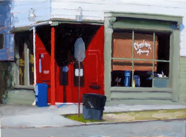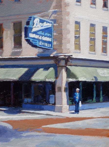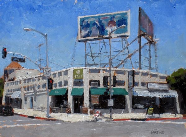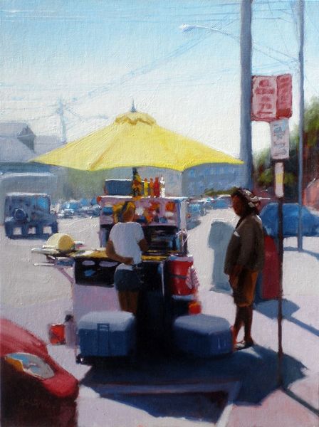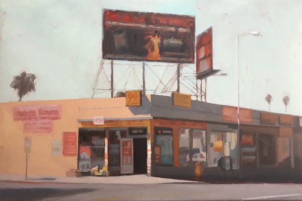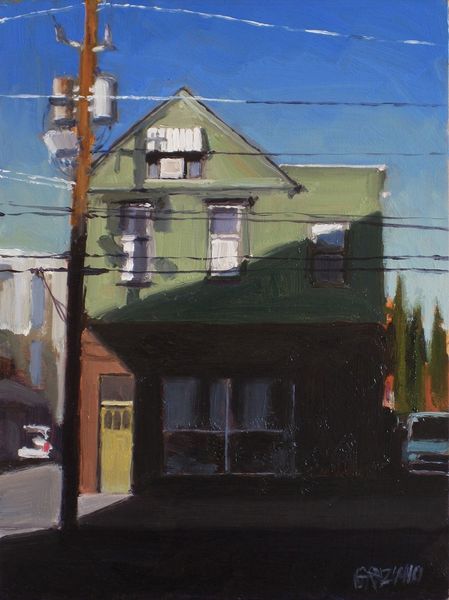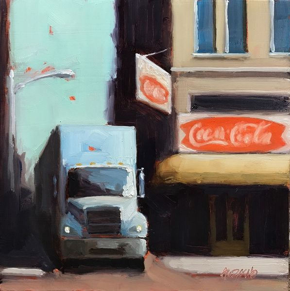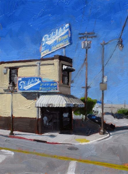 Dan Graziano’s “Steaks And Subs” is a painting that captures an urban scene that resonates with the everyday. Born in 1953, Graziano’s artistic eye focuses on the poetics of the mundane. The choice of subject matter, a modest eatery beneath a tangle of wires and signs, speaks volumes about the cultural landscape it occupies. Who frequents this place? What stories do these walls hold? The answers lie in the intersections of class, labor, and community. The rough brushstrokes and muted palette evoke a sense of nostalgia, tinged with the realities of urban life. There’s a delicate balance between the gritty realism of the scene and the subtle beauty Graziano finds within it. It reminds us that within the ordinary, there are layers of narrative waiting to be uncovered. The painting invites us to consider the narratives embedded in the American landscape.