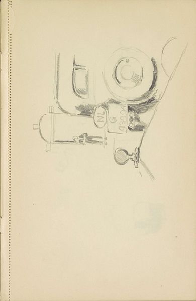 Curator: Here at the Rijksmuseum, we have a pencil drawing on paper by Cornelis Vreedenburgh, simply titled "Auto," created sometime between 1890 and 1946. Editor: Well, my first impression is that this is just that: an auto. Its skeletal form almost gives it the appearance of something unearthed. Curator: Exactly, it reflects a fascination with the budding machine age, but also anxieties about its impact on Dutch society, the fear of overtaking traditional values perhaps? This automobile almost becomes an artifact on display in itself, representing this complex negotiation with modernity. Editor: I see it also from a structural point of view. The minimal lines, mostly geometric, show us just enough of a framework that, if completed, could reflect a much bigger machine. It’s almost a Platonic ideal of a car. Curator: It makes me think about accessibility too. Automobiles at that time certainly signified privilege, a huge marker of social status and wealth. And here is Vreedenburgh documenting this transformation in Dutch culture. This almost dreamlike quality that captures our imagination shows it wasn't everyday life, yet. Editor: I agree with the elusive nature, even from just an artist's practice point of view, that's quite intriguing. He barely puts the pencil to paper, so sparse is it. However, this deliberate withholding adds an alluring quality. Curator: Indeed, there’s a subtle commentary on social values woven into those incomplete lines. Editor: It seems that Vreedenburgh used it as an invitation for us, as viewers, to complete its image with our expectations, reflections, fears or dreams, in this era of new possibilities. Curator: Yes, looking closer it is indeed much more than a simple sketch on paper, but actually, reveals a nation in transit.