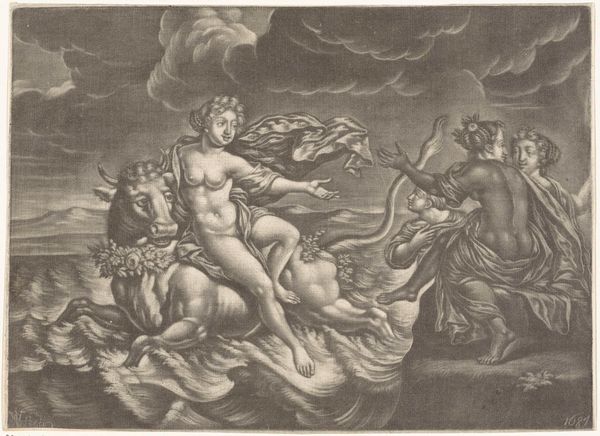 Curator: What a fascinating print. This is "Putti en Hippocampussen," a work created somewhere between 1580 and 1610. The Rijksmuseum holds this engraving, which scholars attribute to Giovanni Andrea Maglioli. Editor: It's captivating, yet… strange. A sort of organized chaos. Muscular cherubs, these "putti," astride serpentine seahorses. Their expressions seem strained, even aggressive. There is tension apparent with all that ornate, yet ultimately anxious, line work. Curator: Absolutely. The Mannerist style is key here; you have these elongated figures, a deliberate departure from the Renaissance ideals of balance. It also emphasizes complex allegories, quite typical of the period's intellectual circles. Editor: And those allegories are rarely benign. Note how those seemingly innocent putti wield these, dare I say, instruments of power. The trident, a symbol of dominion over the seas, rests prominently with its owner. What societal messages were intended regarding early modern ideas of freedom, dominance, and privilege? Curator: Precisely! It’s fascinating to consider the function of prints like this, they weren't merely decorative. These images were circulated widely, disseminating ideas and often serving as propaganda or visual arguments within the social and political landscape. It's critical to acknowledge, of course, who had access to, and controlled, this information stream. Editor: Considering our moment, the symbolism feels unsettling. Winged beings atop fantastical beasts wielding control - it speaks volumes about historical structures of authority, a theme which regrettably is constantly resonant through to modern forms of privilege. This historical art presents enduring issues which must always challenge our perceptions and ideas. Curator: I agree entirely. It forces us to consider how those visual languages perpetuate ideas of power. A piece like this reminds us that art always operates within, and helps to constitute, existing power dynamics. It serves not just aesthetic purposes but is involved deeply in a social setting. Editor: This piece shows its deep understanding of both historical context and political thought, reminding viewers to question the legacy it portrays. Curator: Thank you, these additional layers help see Giovanni Maglioli's piece for its deeper context.