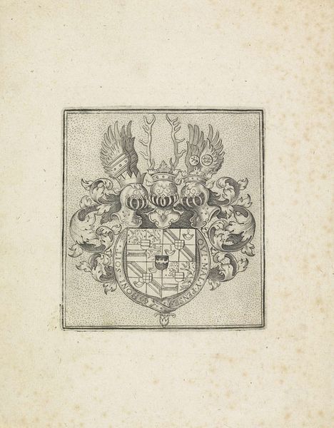 This ornament with Agnus Dei and papal coat of arms was created by Maximilian Joseph Limpach. The artwork presents a circular emblem with a lamb, framed by an elaborate, symmetrical cartouche, etched with meticulous detail. The composition is visually dominated by the contrast between the central, self-contained circle and the flamboyant, outward-spiraling ornamentation that surrounds it. The lines are sharp, creating a textural interplay of light and shadow that gives the print a sculptural quality. The emblem’s structure, juxtaposing the sacred Agnus Dei within an ornamental frame, highlights a tension between the spiritual and the decorative. This tension can be interpreted through a semiotic lens, where the lamb represents religious purity, and the ornate frame suggests the institutional power of the papacy. Limpach’s work destabilizes a singular meaning. The artist invites us to consider how symbols of faith are mediated through artistic form.