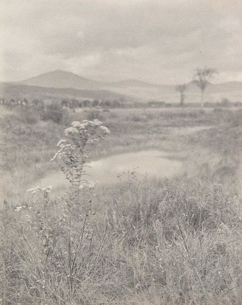 Curator: Welcome, let’s discuss this work, "November," an evocative piece by William B. Post created in the late 19th or early 20th century. The piece is rendered in gelatin silver print on paper. Editor: Oh, hello there. Looking at it, I instantly feel that hazy melancholia, the chill that nips at your face as you walk through a field on a late autumn afternoon. It's almost photographic, but more ghostly. Curator: Precisely, the photographic element comes through strongly in its composition and materiality. Post was working during a time when the mechanical reproducibility of photography began influencing how painters approached plein-air landscape work. Consider how the artist uses a photographic process to capture the transient qualities of light and atmosphere that are usually the realm of painting. Editor: It’s as if he’s chasing a memory, trying to capture something just beyond reach. Do you think the choice of gelatin silver print helped to evoke this atmosphere? Curator: Absolutely. The gelatin silver printing process allows for rich tonal ranges, which accentuates the soft gradations of light and shadow we see here. Post also probably carefully considered his choice of paper, with different papers allowing for different effects. Also, photography in general democratized image production, inviting a new audience to engage with art as a product and experience. Editor: Looking closely, the mist seems to obscure what might be further in the distance. Is this meant to conceal, or perhaps to invite speculation? I think of ghost stories I would hear when I was growing up. Curator: Fog and mist are a device of Romanticism but here the means of production brings into focus questions about labor, capital and access to the means of art making. Instead of painting the image, he photographs it. Editor: It almost seems like a photograph *of* a drawing; its softness makes it so ambiguous, doesn’t it? What was he *saying* about America’s shifting agricultural landscape? Curator: We can assume Post had awareness about that conversation as he engaged in his artmaking, but how it comes across today probably speaks more about contemporary questions. "November" provides the occasion for viewers now to investigate not just Post's individual artistic sensibility but to also meditate on questions about access, artistic value, labor, and who gets to decide. Editor: Interesting! Thinking of it this way enriches my engagement with this picture even more, bringing this sense of place and time alive! Curator: Indeed. Understanding how Post harnessed photographic tools gives us valuable insights into how artwork's purpose and our perception of the visual landscape can change, and how making choices impacts culture!