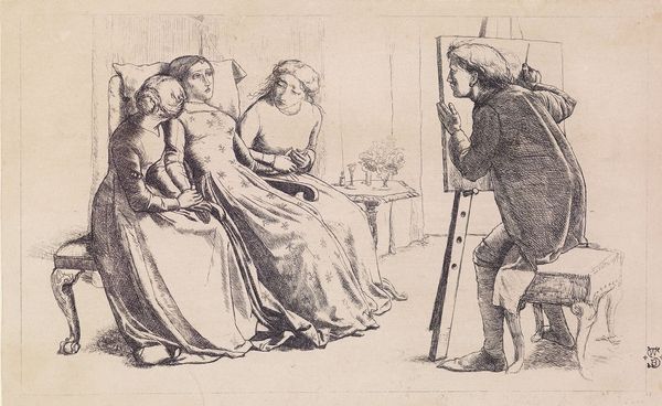 Editor: So, this is Johann Georg Wille's "Six Heads," an undated etching, currently residing at the Harvard Art Museums. It's got such a chaotic energy, like a snapshot from a rowdy tavern scene. What do you see in this composition? Curator: It feels like eavesdropping, doesn’t it? Wille captures these characters with such distinct expressions – suspicion, amusement, maybe even a touch of malice. The drypoint technique gives it this wonderfully scratchy, immediate feel. Like he’s etching their very souls, wouldn't you say? Editor: Definitely, the detail is incredible! Curator: It's like a glimpse into the 18th century psyche. A bit satirical, perhaps? What do you make of the fellow with the elaborate headdress? Editor: He seems like the ringleader somehow, the one orchestrating all the mayhem. Curator: Perhaps, or maybe he's just had a bit too much wine! It's a beautiful thing how Wille lets us fill in the blanks. Editor: I never thought I could have so many stories based on six heads.