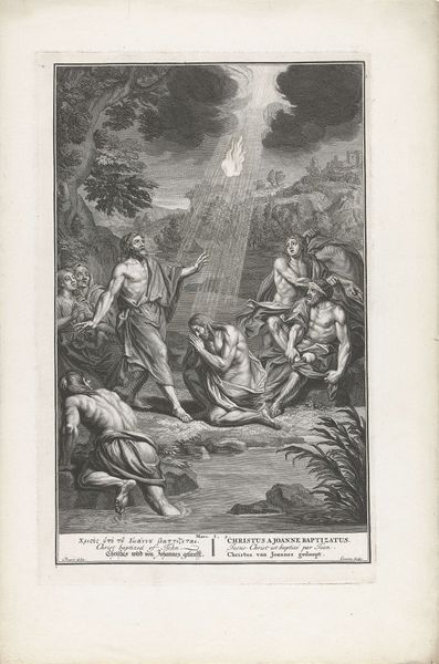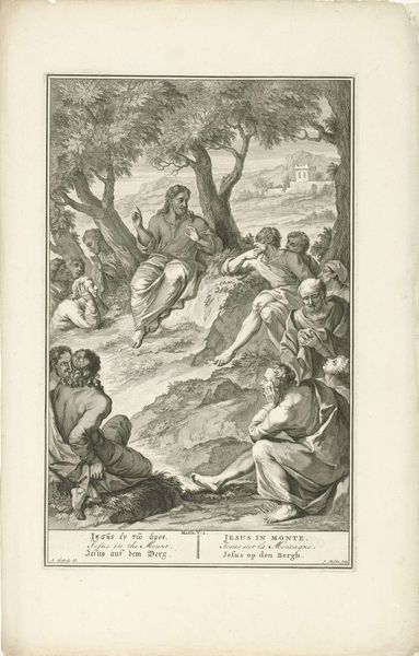 Editor: This engraving by Jacob Folkema, dating from 1791, depicts two scenes: "Elia door de raven gevoed en Obadja voedt honderd profeten in een grot." The rendering is quite detailed. What strikes me is how different the two stories are compositionally, the top feeling more open and the bottom quite enclosed. How do you interpret this work? Curator: You've noticed the key distinction. Let's consider the raven first. Throughout history, it has symbolized many things: prophecy, intelligence, but also death. Notice how the artist has chosen to depict it here, carrying nourishment. What does that reversal suggest about the role of divine intervention? Editor: So, the artist is using the raven as a visual cue, saying that even a symbol of death can be an instrument of God? Curator: Precisely! And below, the scene in the cave. Think about the cave as a symbol itself: refuge, the womb, a place of hidden knowledge. Obadja's feeding of the prophets is about preservation, of not just life, but of faith. It's intentionally darker, representing that which is hidden. It's quite powerful, how Folkema uses contrasting spaces to convey these complex biblical narratives, don't you think? Editor: Absolutely. Seeing those contrasting symbolic spaces really clarified how much the visual language enhances the storytelling here. I had missed all the nuances at first glance! Curator: Visual symbols build shared understanding. Think of them as cultural bridges, connecting us across centuries, to stories and beliefs that continue to resonate. This engraving is a wonderful reminder of how artists employ these bridges to deliver meaning.