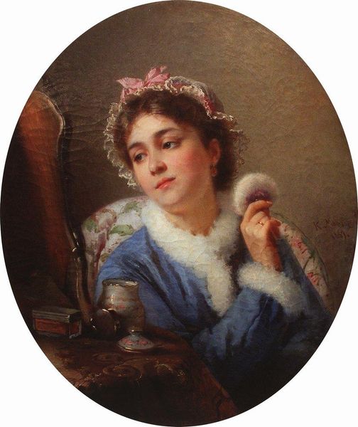 "The Return of the Market" was painted in 1869 by William Bouguereau. Here, the canvas is split between a soft, warm foreground and a dark, depthless background. A young woman is carefully posed, angled to show her face while she carries a pole across her shoulders with what appears to be a heavy load. The artist's use of line, color, and composition directs our gaze to her face and then down her body to the fowl she is carrying. Bouguereau uses a classical structure of form with subtle indications of symbolism. The woman's slightly averted gaze and near smile gives her a sense of coyness and self-possession. A traditional reading might see this painting as a simple presentation of rural life, but it's careful composition and idealized figure reflects broader cultural codes around femininity. The painting invites contemplation of beauty, labor and the gaze.