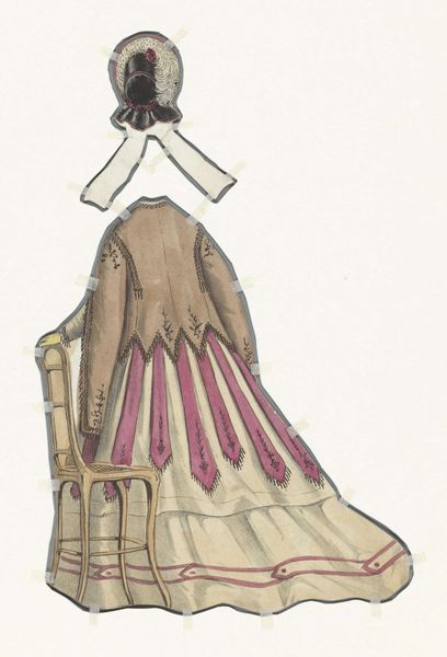 This paper doll dress, entitled 'Jurk voor een uitknippop' was created by an anonymous artist with unknown materials. The piece captures a moment in time, not through a grand portrait or historical scene, but through the lens of domestic life and childhood play. The dress's design reflects the fashions of the 19th century, a time when clothing was heavily dictated by social status and gender roles. The act of dressing and adorning paper dolls provided a space for young people to internalize and perform these roles, mimicking the rituals of adult society. This simple cut-out also touches on the burgeoning consumer culture of the time, where fashion and material goods were becoming increasingly accessible and desirable. As historians, we look beyond the surface to uncover the social structures and cultural values embedded within such seemingly simple objects. By researching fashion trends, childhood education, and the rise of consumerism in 19th-century Europe, we can better understand the significance of this paper doll dress and the world it inhabited. The meaning of art is always contingent on the society in which it was made.