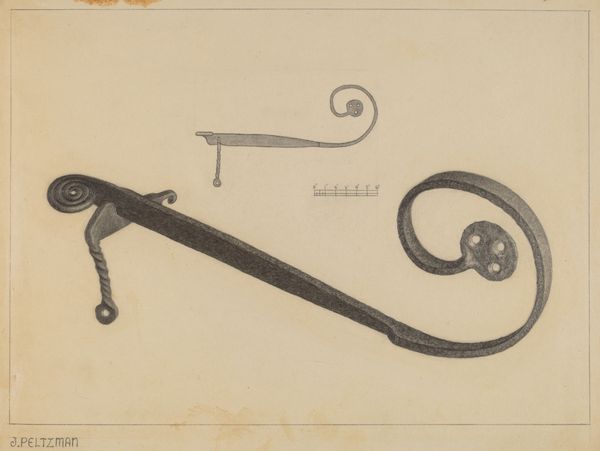 Elizabeth Johnson made this watercolor painting of a branding iron. The choice of medium and subject matter immediately sets up an interesting dialogue. Branding irons were traditionally forged from metal, and put into service as tools of ownership on ranches. In that context, they have a close association with labor, animal husbandry, and the economics of cattle production. The heavy iron gives way to Johnson's delicate watercolor technique, rendering the metal's texture and form with surprising nuance. The artist's hand is evident in the wispy washes of color and the precise rendering of the iron's curves. The presence of the drawn brand mark next to the branding iron underscores the object’s purpose, while also emphasizing the artist's act of observation and documentation. Through this work, Johnson invites us to consider how everyday objects can be elevated through art, challenging traditional hierarchies between fine art and craft.
