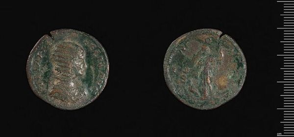 Curator: This little coin, an Antoninianus of Tetricus I, is intriguing. It's labeled a "barbarous imitation," and I find that so evocative. There's a mystery there, a hint of rebellion. Editor: I see a tarnished, humble object, yet teeming with the echoes of empire and resistance. It's fascinating how an object so small can carry such weight. Curator: It feels incredibly human, doesn't it? To try to copy something, but to have it come out slightly… off. It makes you wonder about the person who made it, their skills, their motivations. Editor: Absolutely. These so-called barbarous imitations speak volumes about cultural exchange and power dynamics on the fringes of the Roman Empire. The fact that it's considered an imitation says a lot about whose standards were considered the norm. Curator: It's easy to look at grand sculptures and think, "that's art," but something like this coin—worn, imperfect—can be just as powerful. It’s like a whisper from the past. Editor: And it reminds us that history isn't just about emperors and battles; it's also about the everyday lives of people trying to make their way in the world. It definitely shifts my perspectives on value and authenticity. Curator: Indeed, it is a tiny reminder of the vast and complex web of human experience. Editor: Agreed. It is a subtle provocation to question the narratives we inherit.