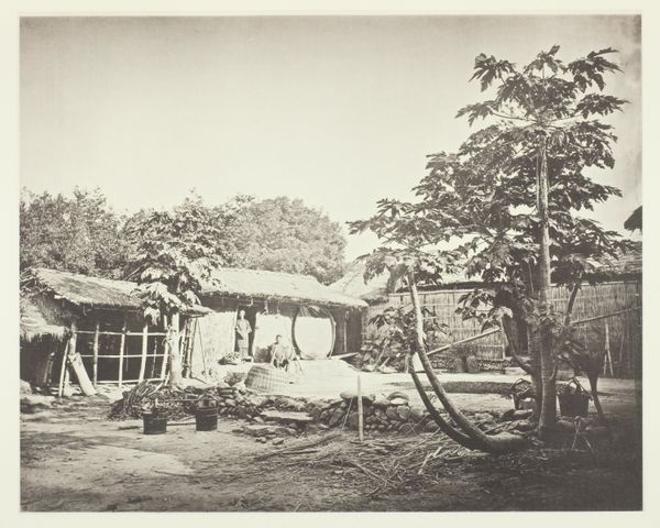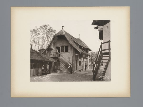 Curator: Here we have Frédéric Boissonnas' "Dorpsgezicht te Langnau," a gelatin silver print predating 1896. Editor: My first impression? An almost tangible quietude. The monochrome tones evoke a wistful sense of time standing still. The composition, quite balanced, invites the eye to wander through the village scene, but the textural details, the surface of this gelatin print, seem to amplify the rustic, rural nature depicted in the image. Curator: Boissonnas, known for his Pictorialist approach, elevates photography here. The soft focus, particularly evident in the background, aims for an atmospheric quality. He’s clearly after more than just documentation. This village becomes an archetype of rural life. We see echoes of debates around urbanization that consumed much of the late nineteenth century, here. Editor: Absolutely. If we look closer, we'll find intricate structures defining the architecture. Notice the contrast in values between light and shadow playing across the textured roofs. Consider, too, the structural organization – how Boissonnas uses a combination of vertical and horizontal forms to establish a perspectival pull that drives our gaze into the distance of this captivating village vista. It feels incredibly deliberate, moving away from strictly representational photography. Curator: Pictorialism gained popularity in the late 1880s, directly pushing against the documentary function ascribed to the relatively young medium of photography. Figures like Boissonnas instead sought to portray the camera as an apparatus to construct something more artistically poignant. Editor: And look, his artistic intent is clear in his handling of light. It subtly diffuses throughout the landscape. These stylistic touches amplify the overall affect: creating a scene of intimate daily life, captured as opposed to simply snapped. But I am left considering how staged, really, is such an ‘affective’ picture, in terms of the socio-economic realities such photography chooses to picture… or ignore. Curator: Well, his selection and careful orchestration of a quiet village surely points towards his artistic and political inclinations— to promote idyllic beauty rather than the complicated realities of the Industrial revolution, for instance. In the end, Boissonnas creates not only a portrait of Langnau, but an idyllic one— framed for posterity. Editor: Yes, in our formalist analysis we see that such compositions can provide more than one angle; from a formal, or from an institutional point of view, even what we can’t readily "see," matters when looking.