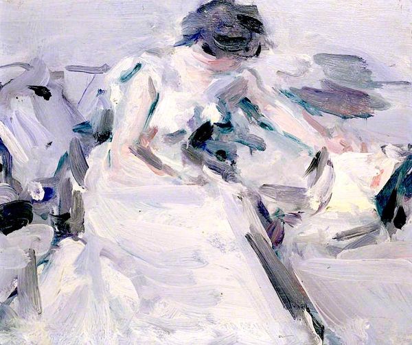 Editor: Here we have Denman Waldo Ross's "Portrait of a Young Man Bending Over," housed right here at Harvard. It feels almost like a fleeting memory, rendered in soft blues and whites. What can you tell me about the imagery at play here? Curator: The bending figure is timeless, isn't it? Throughout art history, the act of bending, especially towards water, often symbolizes introspection, humility, or even baptism and cleansing. Do you feel that reflected here? Editor: I hadn't considered the religious connotations, but now that you mention it, there's definitely a sense of purification or transformation. Curator: Indeed. And the ripples, the water itself—they're symbols of change, of the ephemeral nature of existence. It's a powerful echo of cultural memory within a very personal moment, don’t you think? Editor: That makes me look at it completely differently; it's more complex than I initially thought. Curator: Exactly! The beauty of art lies in its ability to hold multiple layers of meaning, shaped by cultural symbols and personal interpretation.