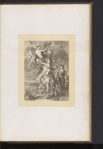 This engraving at the Rijksmuseum captures a pivotal dynastic moment. Dechamps et Cie.’s photomechanical reproduction renders a scene of arranged marriage as high spectacle. The formal arrangement directs our gaze upwards. At the top, Jupiter and Juno sit together, and, below, angels display a portrait of Maria de' Medici to King Henry IV of France. The king regards her image, while figures depicting France and Hymen, the god of marriage, urge him on. The composition invites semiotic interpretation. The upward movement toward the divine realm suggests the sacred nature of kingship and marriage, while the figures of France and Hymen serve as allegorical endorsements of this union. Yet, the very act of reproducing the image shifts its meaning. Dechamps et Cie’s engraving underscores how such images function in a larger cultural discourse, where power is not just divinely ordained but also mediated through representation. This encoding is how the formal structure carries its cultural meaning.