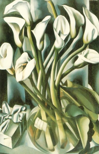 Editor: Here we have Georgia O'Keeffe's "Calla Lily Turned Away" from 1923, rendered in oil paint. There's a certain...intimacy to the composition, even a melancholy feeling as the flower seems to shy away. How do you interpret this work? Curator: I see a powerful statement about the complexities of femininity in the early 20th century. O'Keeffe's flowers are so much more than just botany. The way the petals unfurl, the subtle color gradations... They speak to a burgeoning sexual liberation, but also perhaps a vulnerability, a turning away as you noticed, from the male gaze that was so prevalent during this time. Do you notice how O'Keeffe avoids overt eroticism while still suggesting it? Editor: I do now! So the 'turning away' becomes a gesture of self-possession rather than submission? Curator: Precisely! Think about the social constraints placed on women artists. They were often pressured to depict traditional subjects in a palatable way. O'Keeffe, by abstracting the flower, reclaiming its image, subverts these expectations. What do you think the whiteness contributes? Editor: Purity, maybe? But maybe it is a false purity. A cover for a hidden sexuality? Curator: It is both! And, importantly, that tension is part of the meaning. The painting then embodies the lived experiences of women navigating shifting social boundaries. This wasn't just a painting of a flower; it was a revolutionary act! Editor: I'll never see O'Keeffe the same way again. This really underscores how crucial historical and social context is when approaching art. Curator: Absolutely. By understanding the struggles and triumphs of artists like O'Keeffe, we can better appreciate the radical potential of art to challenge and transform our understanding of the world.