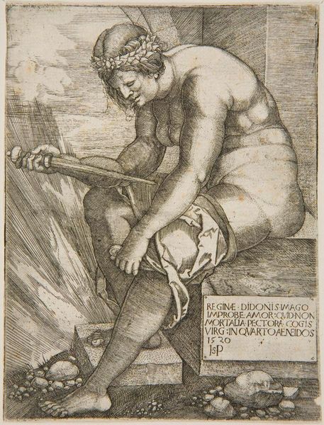 In 1520, Sebald Beham etched "Dido," a queen immortalized by Virgil, consumed by love and despair. Note the laurel wreath, a symbol of her former glory and now, ironically, a crown of thorns as she prepares for self-immolation. The act of suicide itself carries a weighty history. Think of Lucretia, whose death sparked the Roman Republic, or Cleopatra, choosing death over captivity. These acts, like Dido's, become powerful symbols of defiance and tragic love, resonating across centuries. Consider the flame, a destructive force, yet also a symbol of purification and transformation. Fire consumes Dido, yet elevates her story into legend. This dialectic of destruction and renewal speaks to the enduring power of the human spirit, a collective memory etched into our subconscious. The image evokes a primal emotional response, engaging viewers on a deep, subconscious level. The cyclical, non-linear progression of these symbols, how they resurface, evolve, and take on new meanings in different historical contexts, is what I find most compelling.