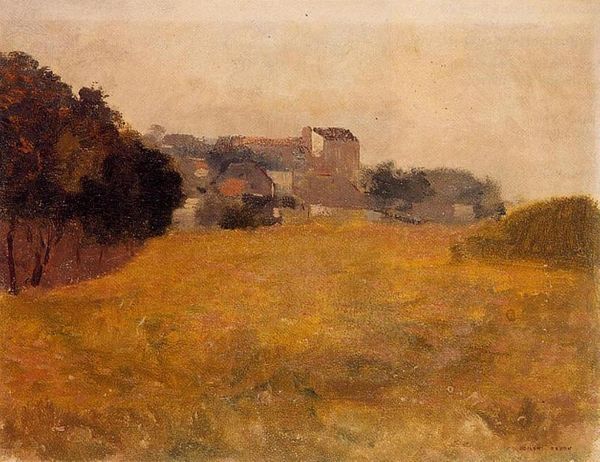 Jean-Jacques Henner created this Italian landscape painting, Village at Dusk, with oil on canvas. The image depicts a rustic village, a scene reminiscent of the Italian countryside, shrouded in the muted tones of twilight. Henner painted this in the latter half of the nineteenth century when many artists turned to landscape as a subject that was free from academic conventions. In France, the Barbizon school of painting was devoted to the careful observation of nature and the subtleties of light. Here, the warm light illuminating the buildings contrasts with the dark shadows of the trees. This division suggests the painting's preoccupation with the passage of time. The subject itself, the unspoiled rural idyll, was associated with a conservative longing for traditional social structures. To understand the painting more fully, we might look at other landscapes by the artist, and read contemporary accounts of the artist and his milieu. This would allow us to see how it spoke to the tastes and cultural assumptions of its time.