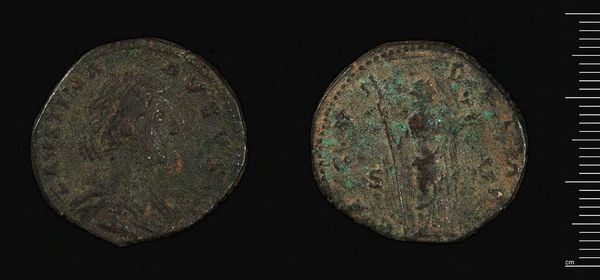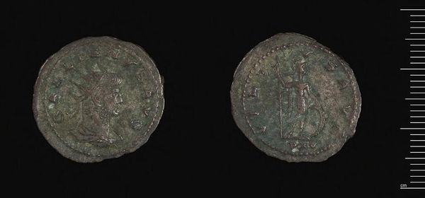 Curator: This is an Antoninianus coin, depicting Cornelia Salonina, and currently residing at the Harvard Art Museums. Editor: It looks so worn, you can barely make out the details. What kind of metal is it? Curator: Antoninianus coins were typically made of silver alloy, but over time, debasement occurred, incorporating more base metals like bronze. This has implications for the Roman economy, as the value of money fluctuated wildly. Editor: I'm struck by the process of striking and circulation. Imagine the hands this passed through. How the materials were sourced, the labor involved in its creation. Curator: Absolutely. Coins were critical for imperial propaganda, circulating images of power and projecting stability, even when that was far from reality. Salonina, as empress, would have been a key figure in this visual strategy. Editor: But it's a small thing, a coin. Yet, it carries so much weight, literally and figuratively. Curator: Indeed, a potent symbol of Roman authority, reflecting both its aspirations and its eventual decline. Editor: It makes me think differently about the labor and material realities behind ancient symbols. Curator: And for me, it contextualizes Salonina’s reign within the broader socio-political landscape of the Roman Empire.