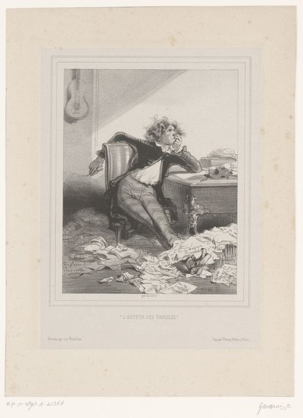 Paul Gavarni created this print, now in the Rijksmuseum, using lithography. Here, we see an elderly woman addressing a dog in a bed. The dog, elevated to the position of a spoiled child, is a powerful emblem of changing social attitudes. Consider the motif of the domestic animal given human-like status; it echoes in ancient Egyptian art with deities depicted as animals and in classical myths like Cerberus. This elevation isn't merely whimsical; it signifies a deeper psychological shift. Animals often become surrogates, reflecting our anxieties and desires onto them. Throughout art history, the act of endowing animals with human traits has served as a projection screen for our deepest emotions. Gavarni’s portrayal of the dog taps into this long, cyclical tradition, where the animal represents a unique blend of companionship and emotional complexity. It reminds us of the continuous evolution of symbols, adapting to reflect our ever-changing inner lives.