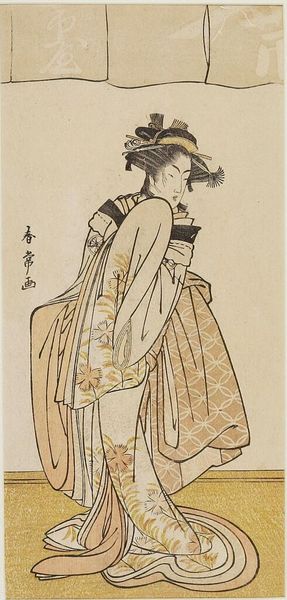 Ippitsusai Bunchō created this woodblock print of the actor Onoe Tamizo I in a female role, sometime in the late 18th century. During the Edo period in Japan, Kabuki theater was a vibrant, yet highly regulated, space where gender and identity were often explored through performance. Because women were banned from performing, male actors known as "onnagata" specialized in playing female roles. Bunchō's print captures the artifice of gender, showing a male actor embodying femininity. The print complicates simplistic notions of gender identity by showcasing its performative nature. The flowing robes, delicate makeup, and refined gestures all contribute to the construction of a female persona, highlighting how gender can be both a costume and a craft. The beauty of the print lies in its ability to reveal the layers of performance and identity, inviting us to reflect on the fluidity and constructed nature of gender roles. This image remains poignant as it mirrors contemporary conversations around identity and representation.