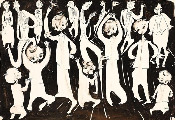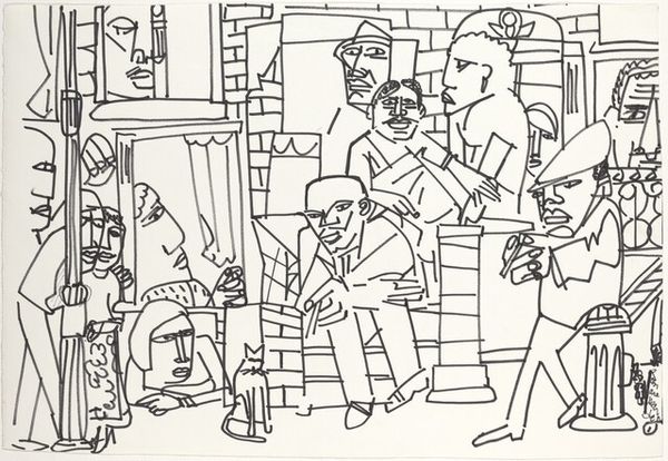 Danil Nemirovsky made this black ink drawing, titled "Community", without indication of a specific date. It features an interior scene populated by figures, some possibly portraits. The word 'Utopia' looms large in the composition, maybe suggesting an ironic intent. Russia, where Nemirovsky lives and works, has a long and complex history with utopian thought. We might ask whether his “Community” seeks to critique the legacy of failed attempts to enact radical social change. Nemirovsky seems attuned to a post-Soviet and post-internet world of individuals seeking identity and connection. The work could be seen as an exploration of the way people build communities in the digital age and how this impacts our engagement with the world around us. To dig deeper, we could research the artistic and political debates taking place in Russia during Nemirovsky's lifetime, tracing the artist's social networks and exhibition history, and conducting interviews with the artist himself.