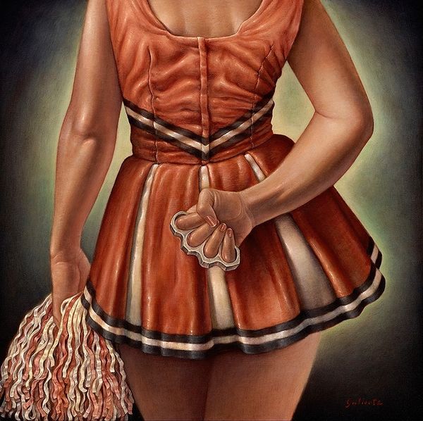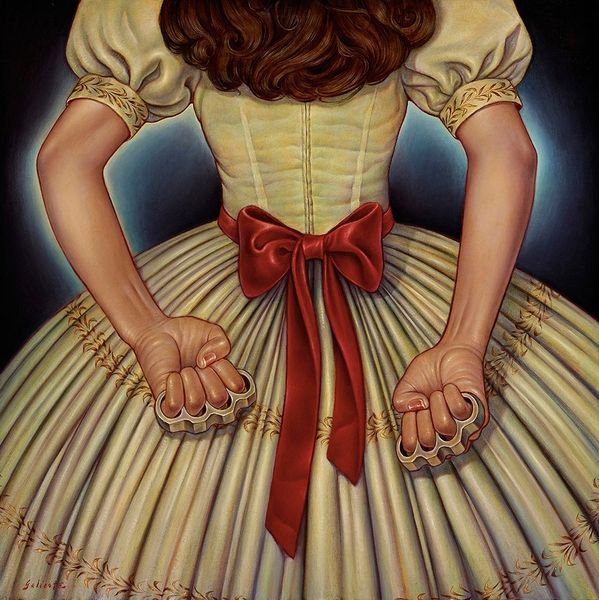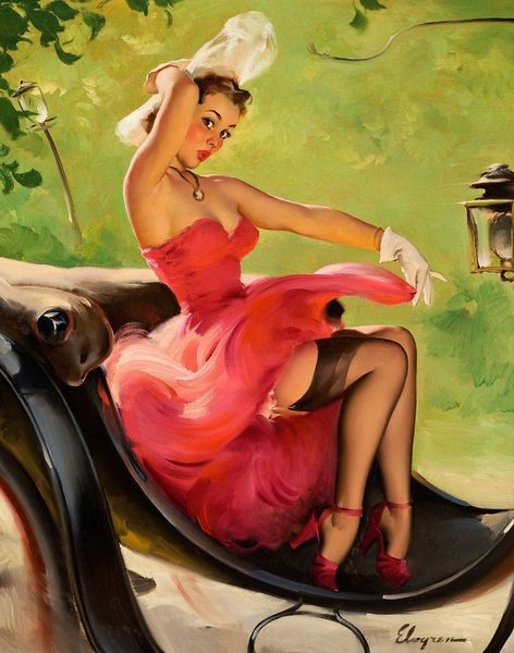 Danny Galieote created "Mailbox Baseball," sometime in the 20th century. It depicts a woman leaning out of a car window, baseball bat in hand, with mailboxes lining the roadside. The artwork is steeped in mid-century Americana, evoking a sense of nostalgia and perhaps, a bit of rebellion. The woman’s attire, a polka dot dress, pearls, and perfectly styled hair, contrasts with the act of mailbox baseball, a symbol of youthful defiance. Here we see a juxtaposition of traditional femininity with a more subversive act. The image prompts questions about gender roles, societal expectations, and the complexities of identity. Is she breaking free from constraints, or is she playfully engaging with them? The artist leaves us to wonder. "Mailbox Baseball" presents an intriguing commentary on American culture, blending humor, nostalgia, and a touch of playful disruption.